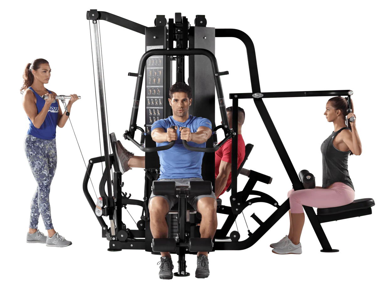 The Hoist H-4400 – Drawing on 30 years of dynamic innovation, HOIST® has designed multi-station strength training systems to provide the same smooth, natural, quiet motions that have become the HOIST® trademark. Multiple individuals can perform all major exercises found in most health clubs.