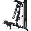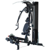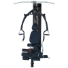 A Multi-Gym with fixed press arms, 3 pulleys, a seated leg curl & extension station, & free movement handles.