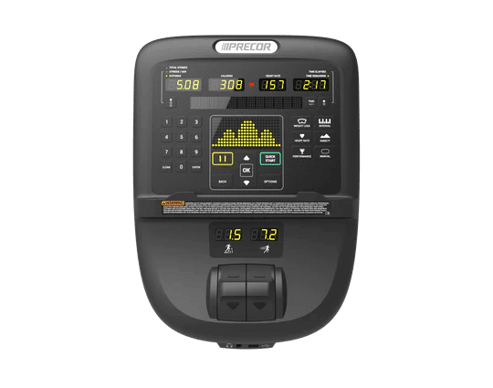 | Electronic Readouts | Resistance Level Distance, Strides/Min, Total Strides Calories Heart Rate Time Remaining, Time Elapsed % Complete, Time in Zone, Segment Time Remaining, Average Speed (strides per min), Calories / min, Calories / hour, Watts, METS, Target HR, Average HR |